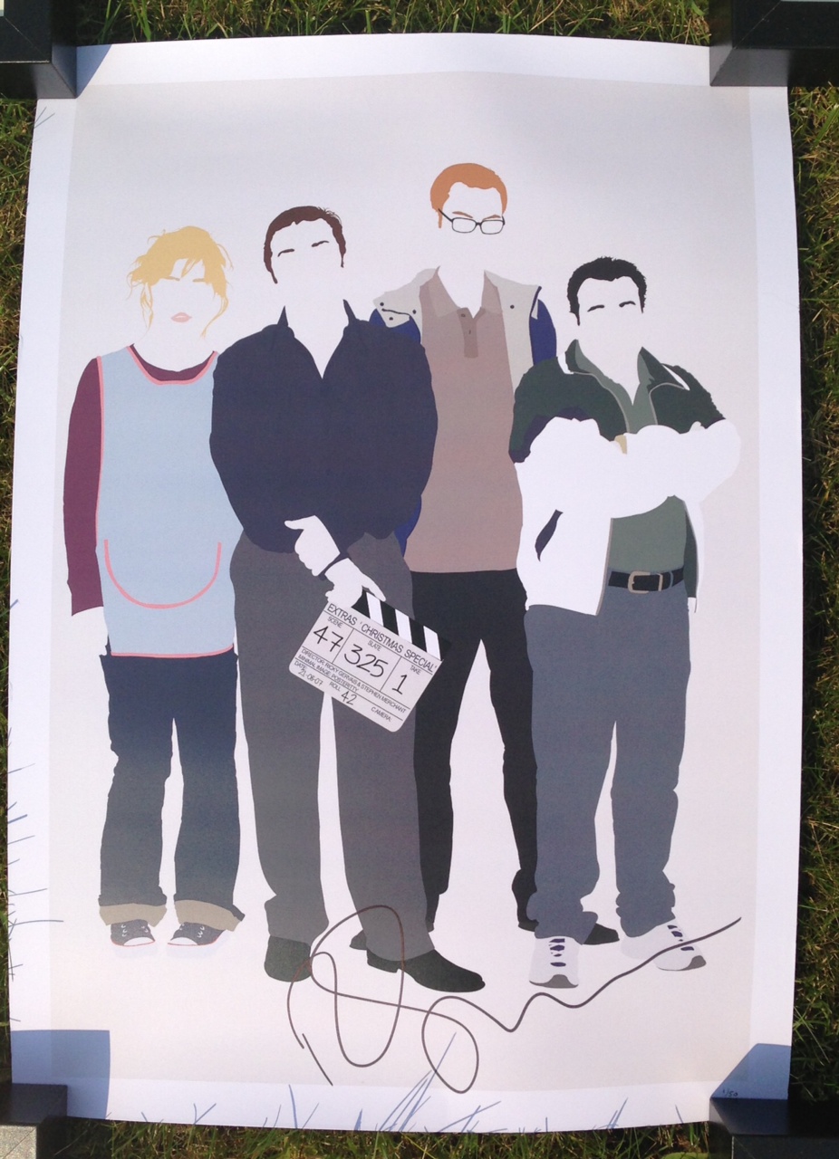 and Kev signed by Ricky Gervais, Karl Pilkington and David Earl.